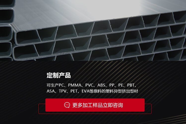 可生產(chǎn)PC、PVC、ABS、PP、PE、ASA、PET、EVA等原料的塑料異型擠出型材